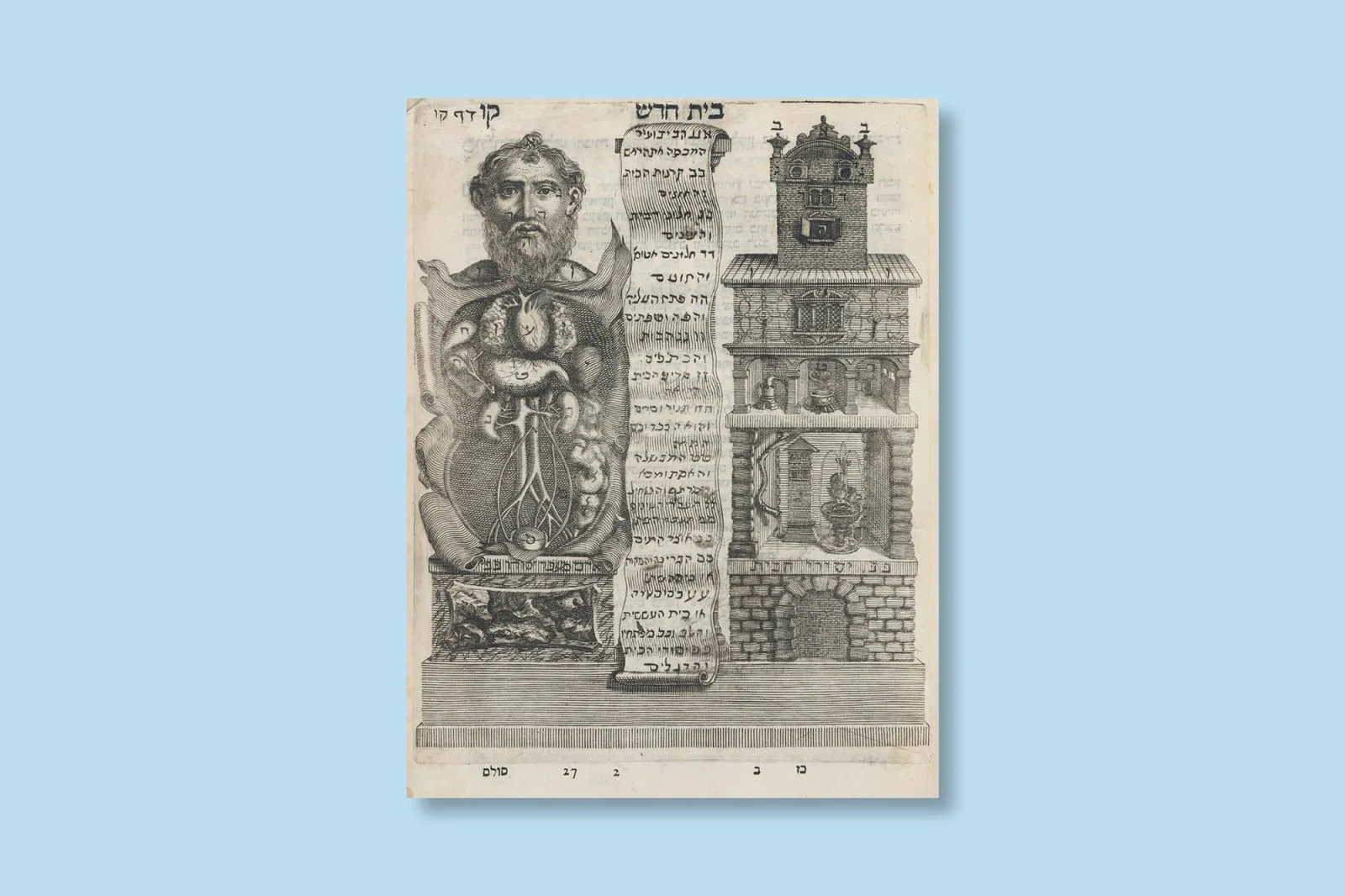 In Ma’aseh Tuviyah, a 1708 scientific reference book by rabbi-physician Tobias Cohen, the human body is imagined not as a proverbial temple, but as a four-storey house with an attic for a head, kitchen for a belly, and plumbing and water features for excretion. Credit: Wikimedia / Houghton Library / Harvard University